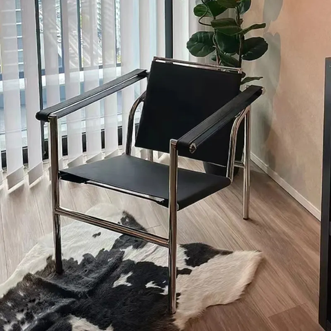 JP Chaise longue en cuir de vache en métal de style moderne Chaise en acier inoxydable pour chambre à coucher