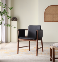 Chaise de loisir au design simple JP, en bois massif, confortable, avec accoudoirs en cuir et assise en éponge, pour salle à manger, hôtel